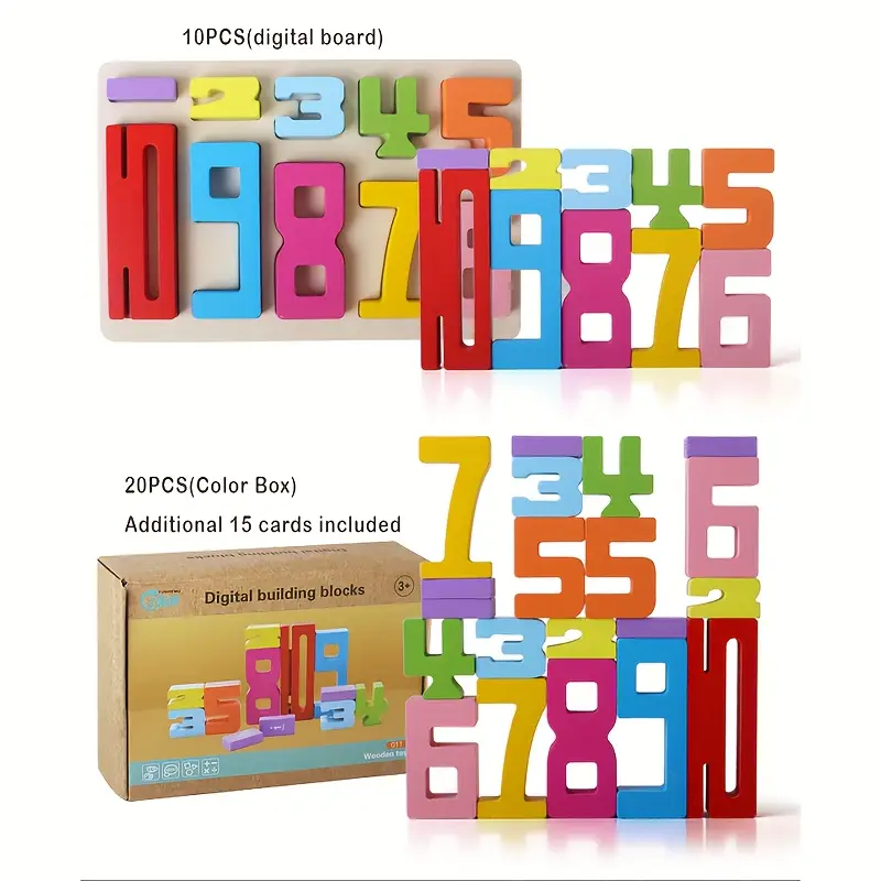 Bloques construcción números educativos de madera