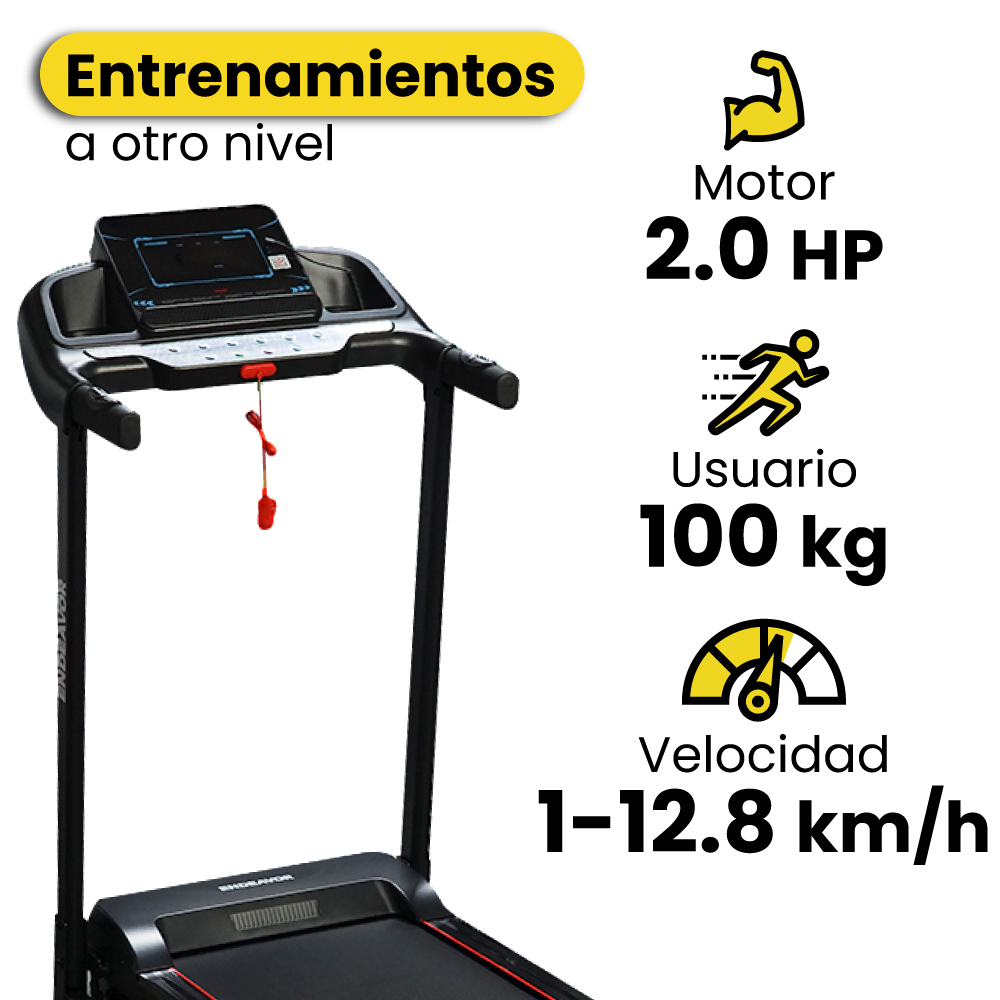 - Velocidad ajustable: Alcanza una velocidad máxima de 12.8 km/h para adaptarse a diferentes niveles de entrenamiento.