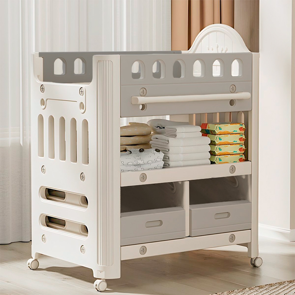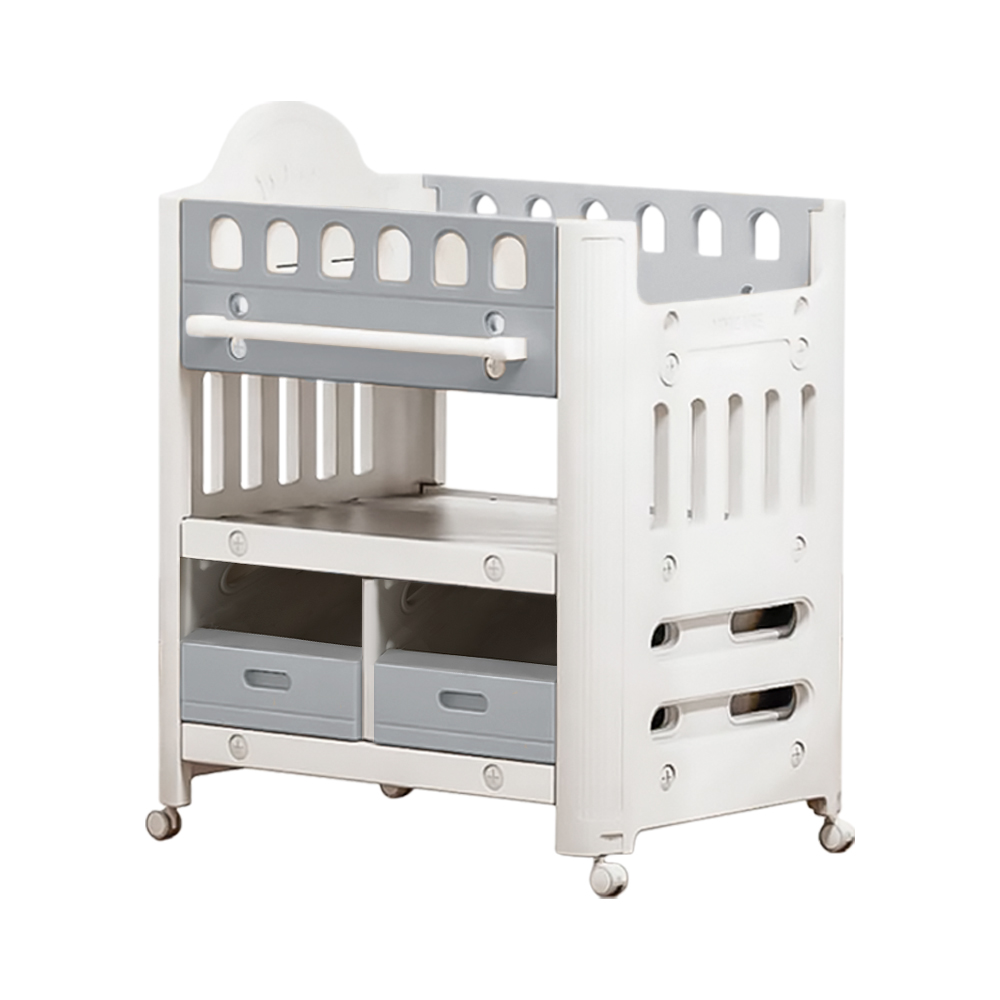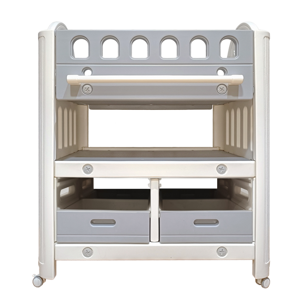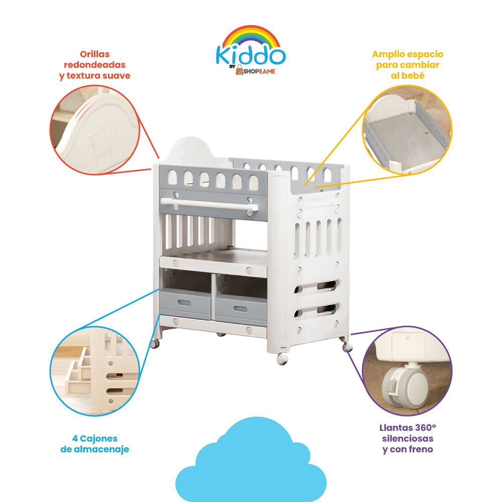 El cambiador cuenta con un estante organizador incorporado, perfecto para tener a mano todos los artículos necesarios para el cuidado de tu bebé.