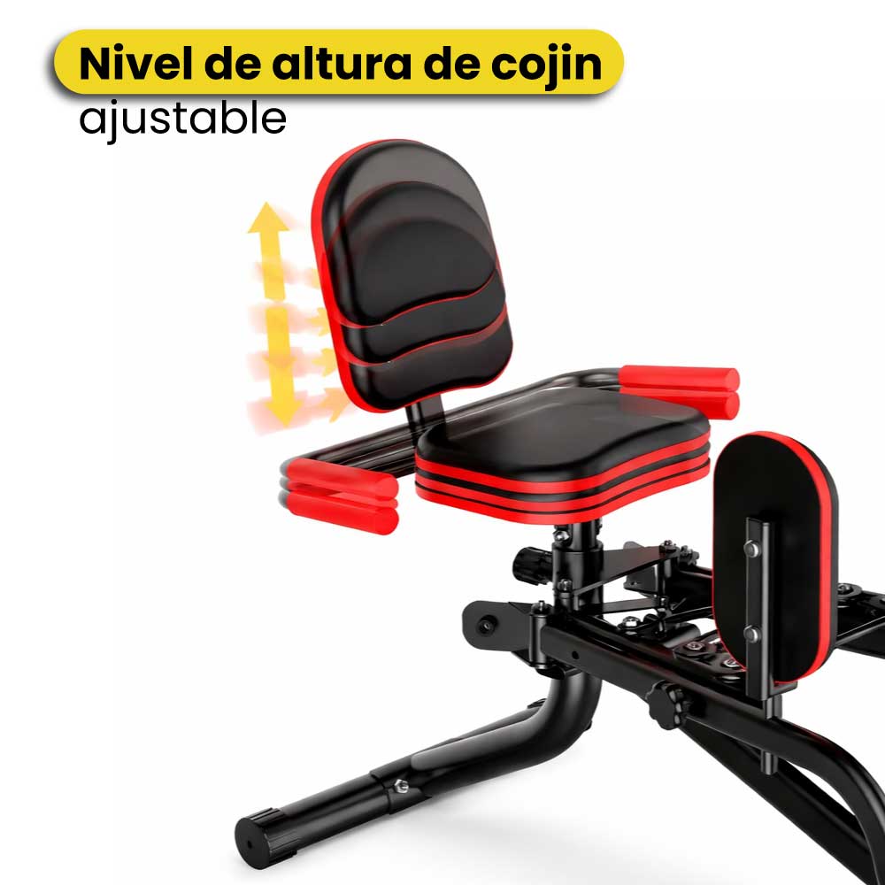 Esta máquina de entrenamiento está diseñada para ofrecer máxima estabilidad, seguridad y comodidad durante cada ejercicio. Cuenta con una estructura triangular reforzada y un sistema de soporte de cuatro puntos, combinados con tuberías de grosor mejorado y un bastidor principal soldado en una sola pieza, lo que permite soportar firmemente la fuerza del movimiento y garantizar un uso estable, sin sacudidas, incluso durante entrenamientos intensos. Incorpora un sistema de rotación libre de 360 grados junto con un brazo de apoyo para equilibrio, lo que permite realizar ejercicios de aducción de muslos y abducción de glúteos de forma fluida y continua, sin puntos muertos. Además, posibilita el entrenamiento simultáneo del equilibrio corporal. Las almohadillas de apoyo con ajuste giratorio permiten nivelar la máquina con precisión, adaptándose a distintos tipos de suelo y mejorando la experiencia de uso en cada detalle. Pensada para cubrir las necesidades principales de modelado corporal, esta máquina ofrece dos modos de entrenamiento prácticos. Al configurarse como máquina de abducción de glúteos, permite aplicar la fuerza de manera precisa para tonificar y levantar los glúteos, ayudando a definir una forma firme y estilizada. Al cambiar al modo de pinza de muslos, no solo contribuye al fortalecimiento del suelo pélvico, sino que también realiza un entrenamiento focalizado para el modelado de muslos, optimizando los resultados en menos tiempo. Cuenta con un sistema de ajuste de resistencia de tres niveles, 20 kg, 25 kg y 30 kg, que permite una progresión gradual y segura, ideal tanto para principiantes como para usuarios avanzados, reduciendo el riesgo de lesiones por sobreesfuerzo. La altura del asiento es ajustable, lo que facilita su adaptación a personas de distintas estaturas y mejora la comodidad durante el entrenamiento, haciendo que cada sesión sea más eficiente y agradable. No requiere una instalación complicada y ocupa poco espacio, lo que la convierte en una opción ideal para el entrenamiento en casa. Una sola máquina permite trabajar el levantamiento y tonificación de glúteos, el modelado y adelgazamiento de muslos, el fortalecimiento del suelo pélvico y la mejora del equilibrio corporal. Es la solución práctica para alcanzar objetivos de acondicionamiento físico desde casa, evitando traslados al gimnasio y disfrutando de una forma de ejercicio cómoda y efectiva.