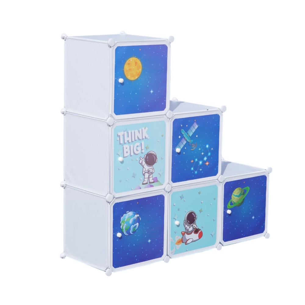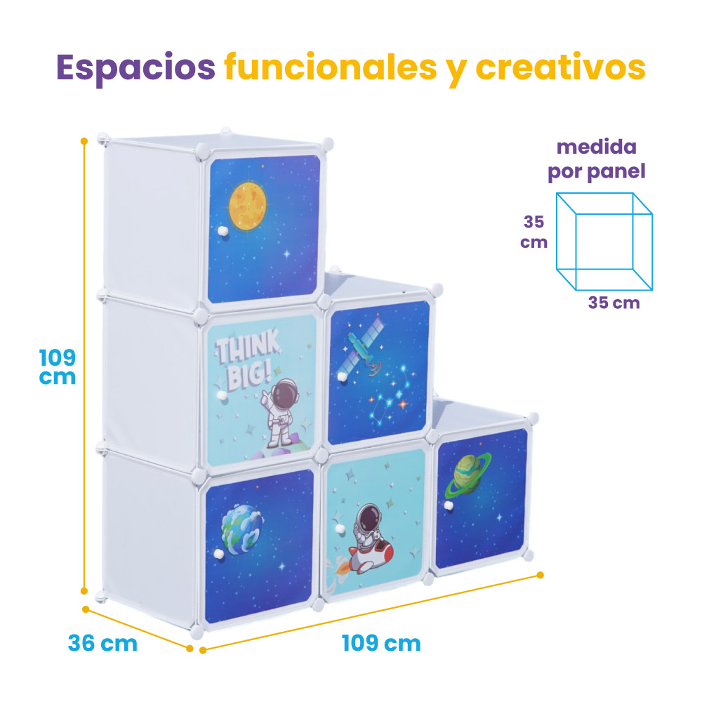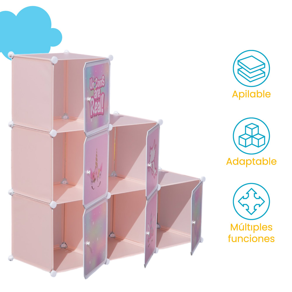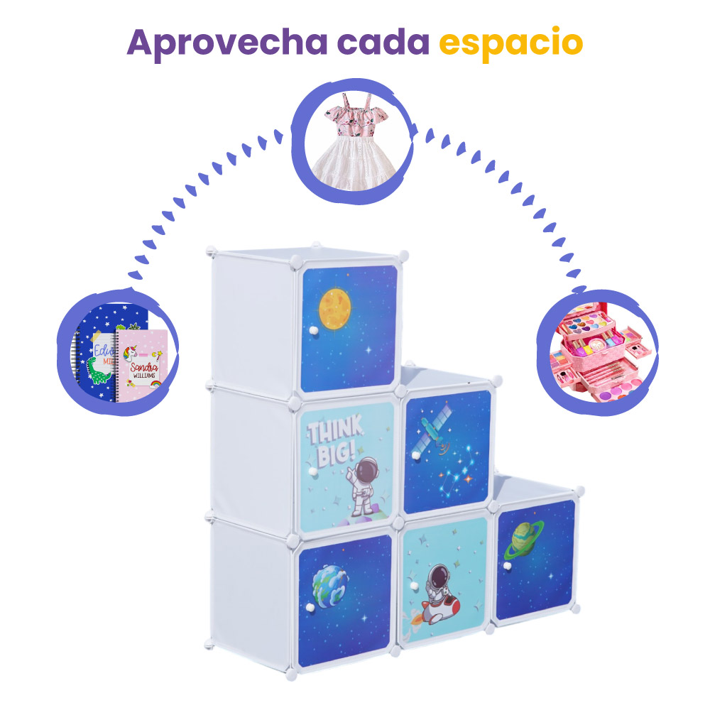 Este juguetero/zapatero modular de 6 niveles con puertas es la solución perfecta para mantener todo organizado de manera práctica y funcional. Además de ofrecer un amplio espacio de almacenamiento, su diseño colorido y temático añade un toque divertido y único que transforma cualquier habitación en un lugar lleno de estilo.