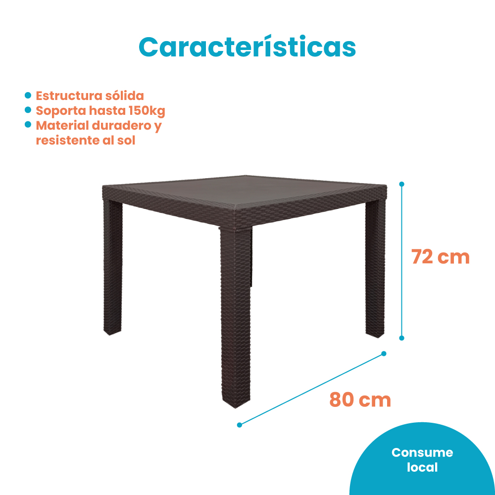 Dimensiones (largo x ancho x alto): 80 x 80 x 72cm