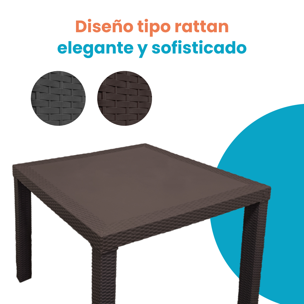 Mesa perfecta para uso en exteriores, ideal para jardín, terraza, restaurantes o cafeterías.