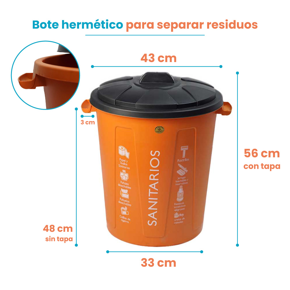 Cesto de basura ideal para separación de residuos en casa, oficina, almacén, taller o cualquier lugar de tu elección en interiores y exteriores. Puedes elegir entre Orgánico, Inorgánico y Residuos sanitarios. El bote para basura tiene un diseño muy autentico y novedoso en donde vienen ilustrados en su superficie el tipo de basura que puedes colocar dentro de el. Cada bote dependiendo del tipo de basura es de un color distinto, por lo cual, hará que sea más fácil para ti, identificar que tipo de basura va en cada bote.**NOTA** La venta es por piezaEl bote para basura incluye tapa, esto te ayudará a mantener un ambiente limpio, ordenado y libre de olores. Para una mejor transportación el diseño del bote, cuenta con agarraderas, con las que hará que moverlo sea de una manera más sencilla. |